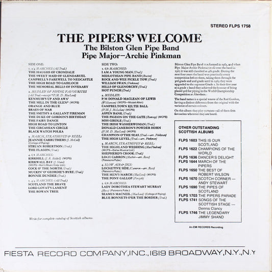 Bilston Glen Pipe Band - The Pipers' Welcome (LP, Album) (Very Good Plus (VG+))