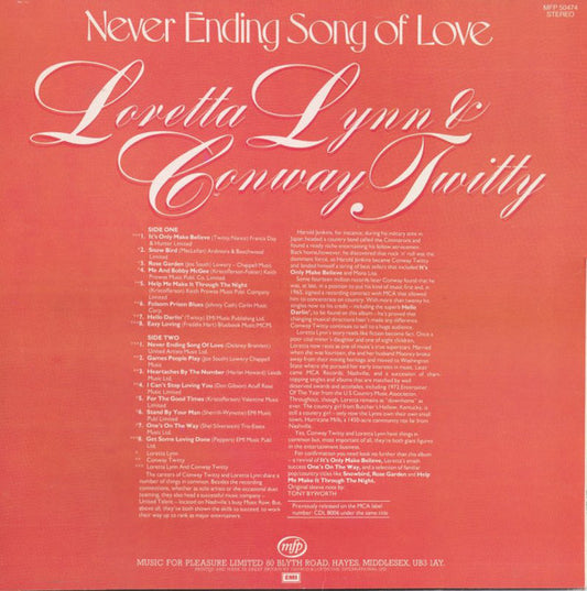 Loretta Lynn & Conway Twitty, Conway Twitty & Loretta Lynn - Never Ending Song Of Love (LP, Comp, RE, RP) (Very Good Plus (VG+))