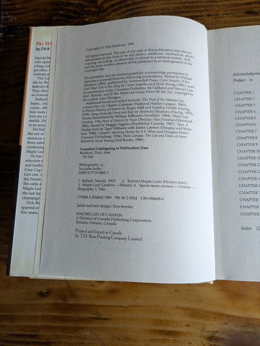 PAL HAL: A BIOGRAPHY By Dick Beddoes - Hardcover 1989 First Edition Book