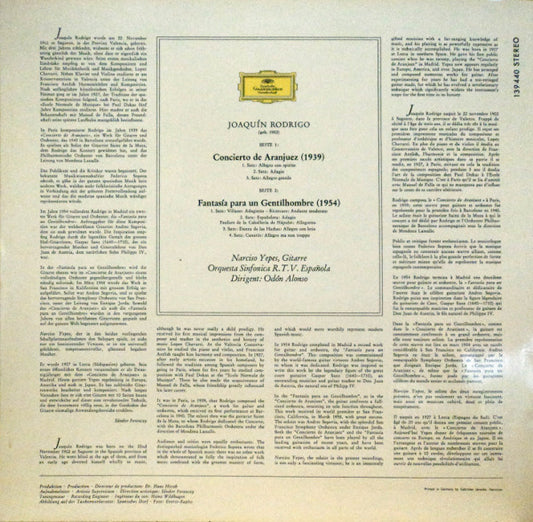 Joaquín Rodrigo · Narciso Yepes - Orquesta Sinfónica De RTVE · Odón Alonso - Concierto De Aranjuez / Fantasía Para Un Gentilhombre (LP) (Very Good (VG))