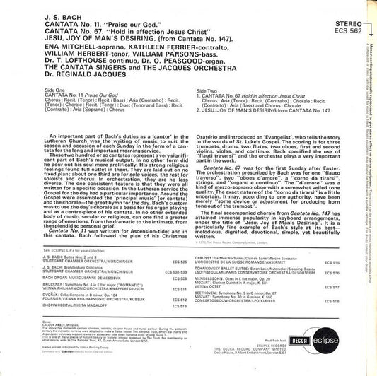 Johann Sebastian Bach, Ena Mitchell, Kathleen Ferrier, William Herbert, William Parsons , The Cantata Singers, The Jacques Orchestra, Reginald Jacques - Cantatas Nos. 11 & 67 / Jesu, Joy Of Man's Desiring (LP, Comp, RM) (Near Mint (NM or M-))