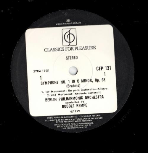 Johannes Brahms, Berliner Philharmoniker Conducted By Rudolf Kempe - Symphony No. 1 In C Minor (LP, Album, RE) (Very Good Plus (VG+))